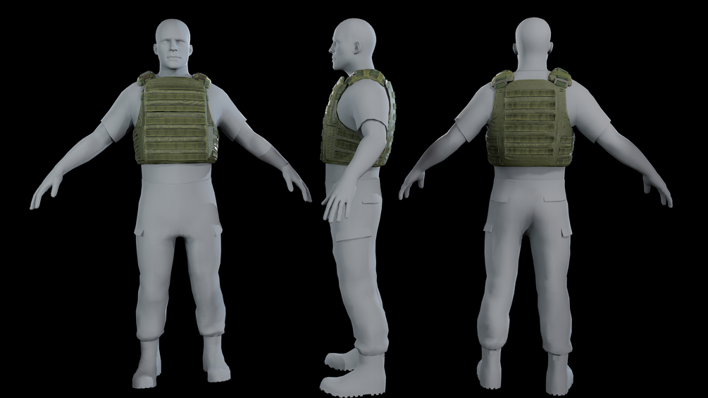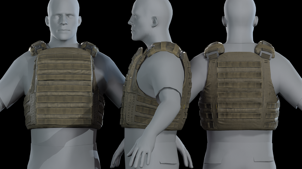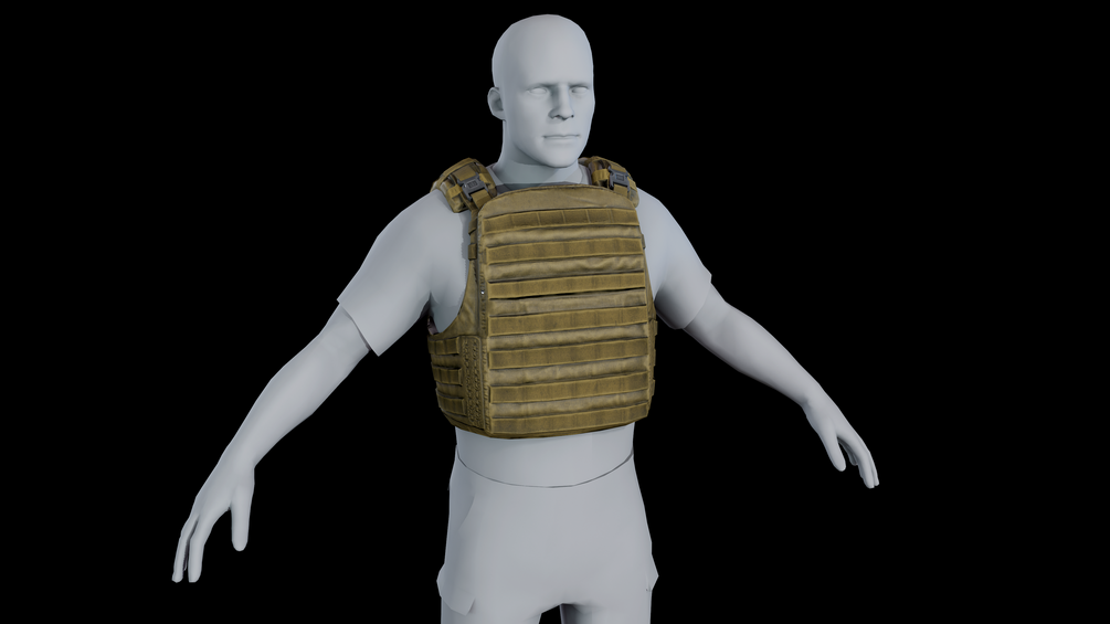 Lowpoly, flak vest 3d model with PBR textures, rigged.